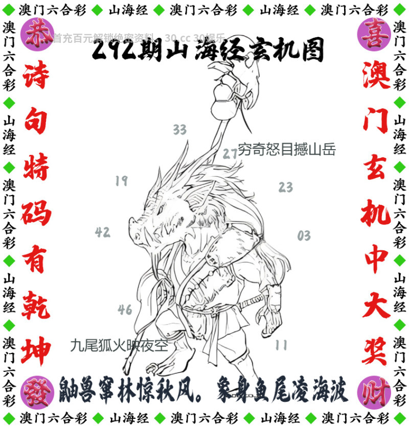 解料:腾空玄猴掌乾坤,白翎仙鸡引东风解虎狗猴